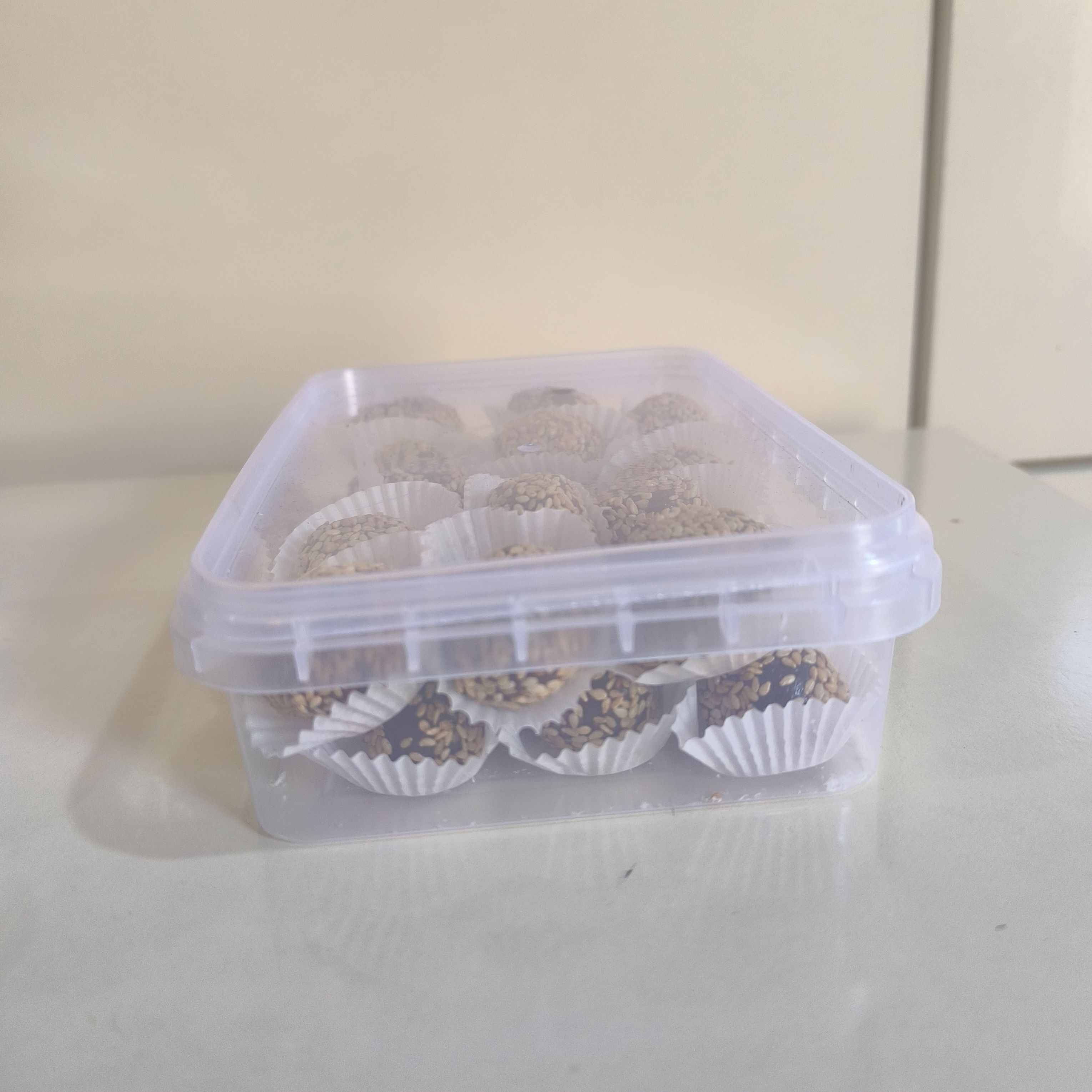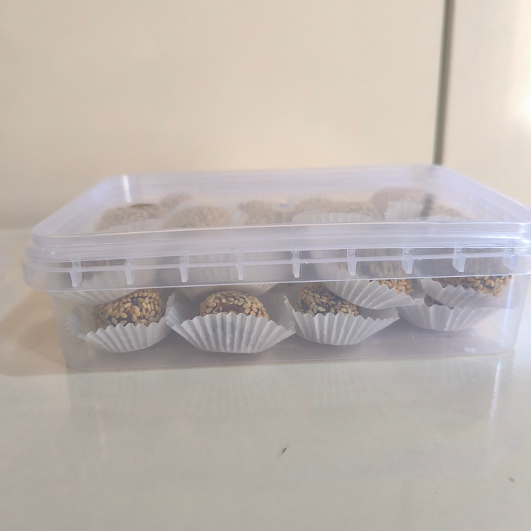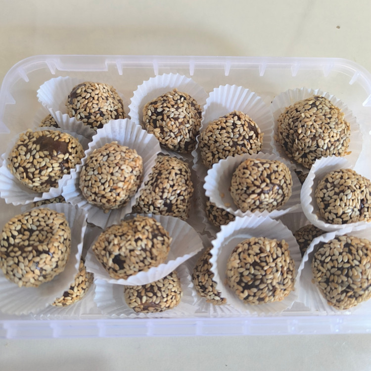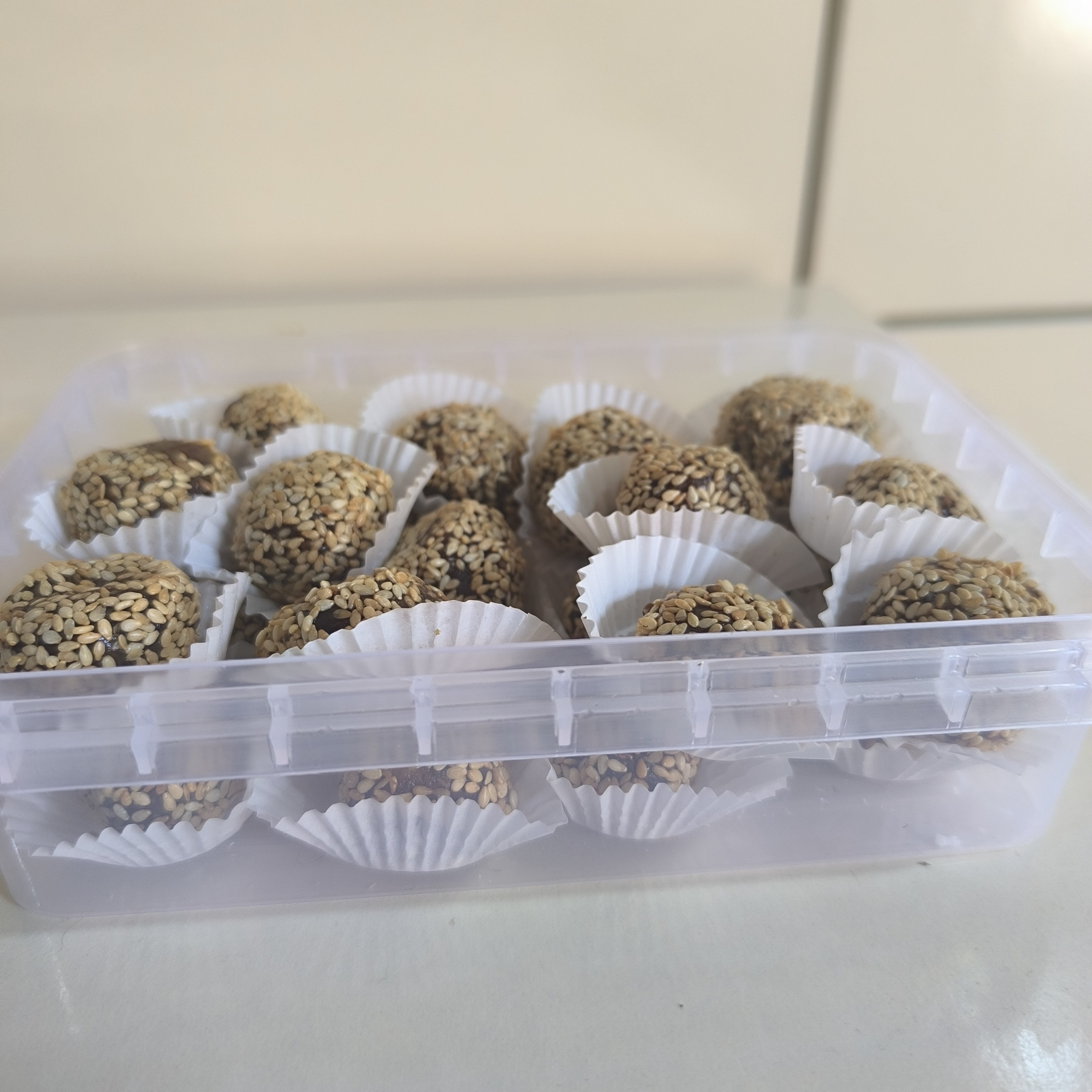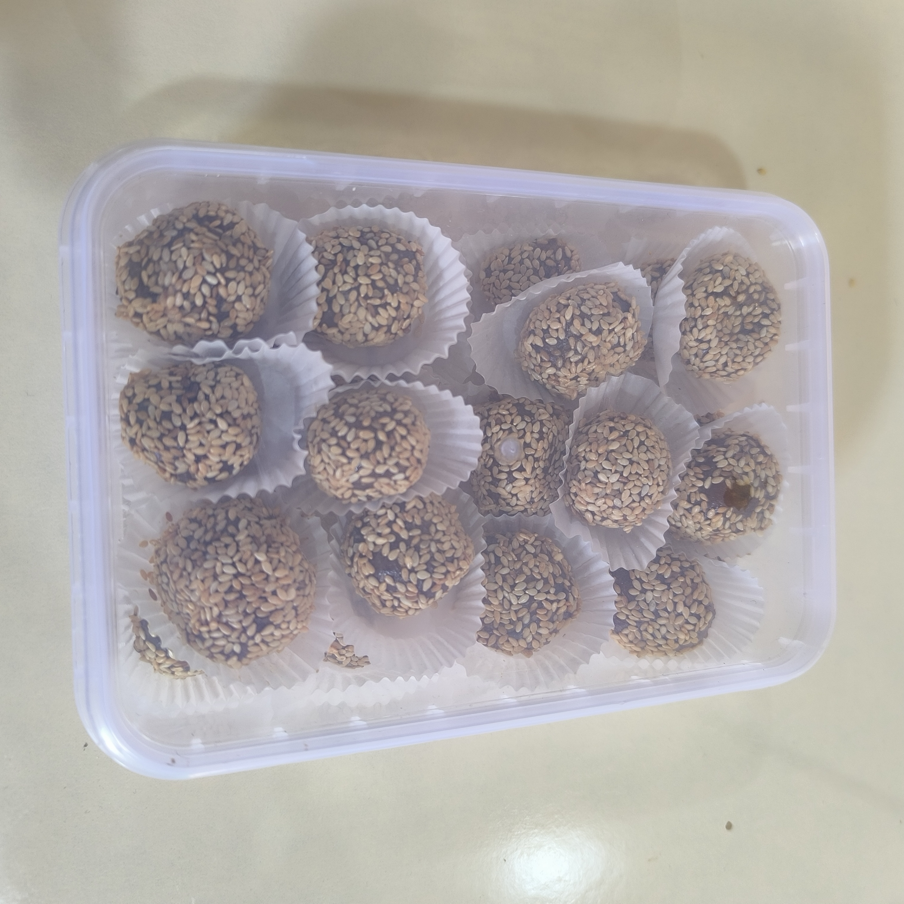 توپک حلوا خرمایی،درست شده از روغن،کنجد(پودر نارگیل) وخرما،دسری بسیار خوشمزه ولذیذ،انرژیزا ومقوی،برای کودکان ،ورزشکاران،افراد کم بنیه سالمند ،مادران باردار وشیر ده بسیار مفید میباشد،خاصیت زد سرطانی داشته وبسیار پرقدرت