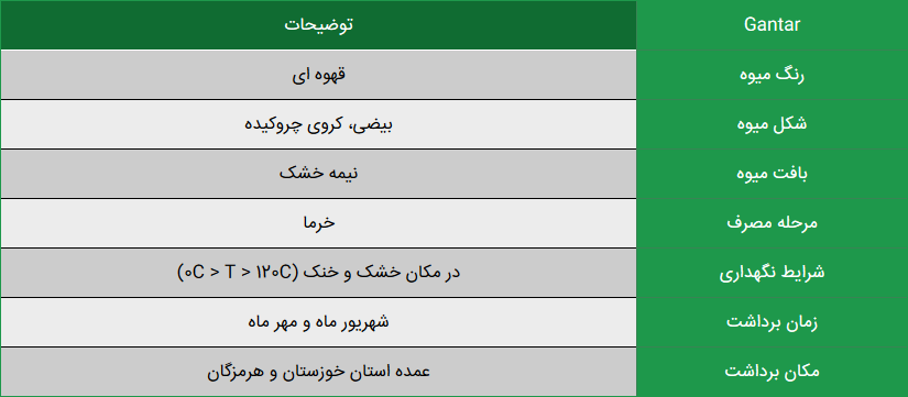 خرمای گنتار (خاصه بهبهان) جزء خرماهای تر محسوب می شود و بافت ریز دارد.