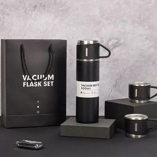 فلاسک 3 کاپ کادویی وارداتی مدل hot-cold VACUM