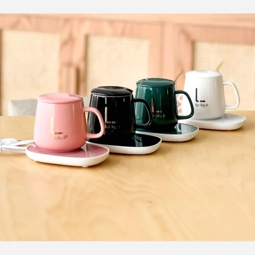ماگ هیتر دارسرامیکی باپایه گرمکن در4 رنگ (سفید|مشکی|صورتی|سبز)