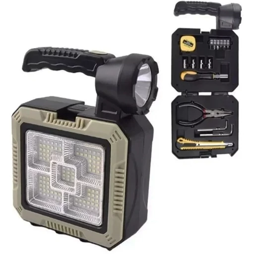 🔦 چراغ قوه چندحالته جعبه ابزار دار پنل خورشیدی
